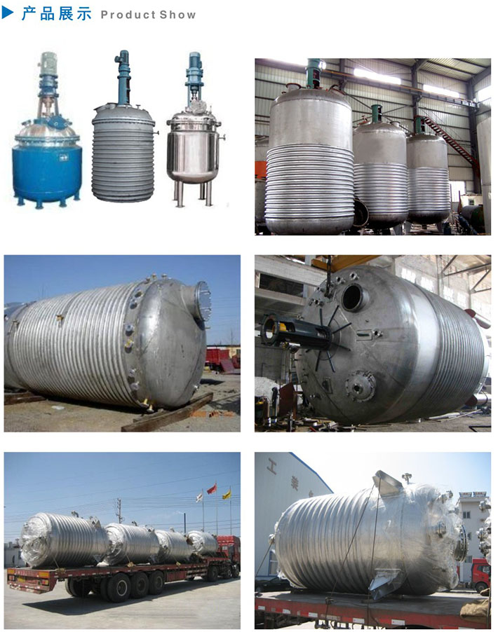 反应容器指主要用来完成物理、化学反应的压力容器,例如反应釜、氧化釜、分解釜、聚合釜、结晶釜等。我公司可制造容积80m³、压力10MPa、单台重量100T的大型反应釜。加热方式有电、蒸汽、导热油、红外线等.冷却方式为夹套、外盘管和釜内盘管冷却.转数O~1000r/min变频调速。搅拌桨叶的形式可根据用户的要求任意选配。材料可为碳钢、不锈钢、钛、铝合金、双相钢及其复合材料。 根据反应釜的密封形式不同可分为填料密封、机械密封和磁力密封。 根据反应釜的制造结构可分为开式平盖反应釜、开式对焊大法兰反应釜和闭式反应釜三大类.每一种结构部有它的适用范围和优缺点