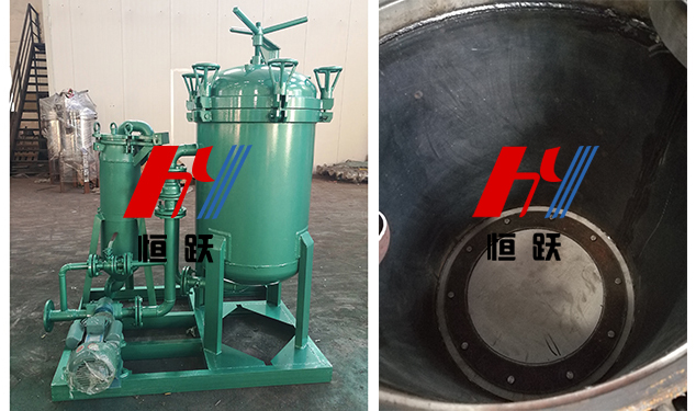 作为原油等比较脏的液体的固液分离,主体是由装料口、壳体、滤网片、滤料、卸料口、管道和齿轮泵等组成,滤网片是由4层不锈钢丝网组成,安装在底部封头处,更换滤料十分方便。如果是作为经过初步固液分离后的液体的澄清性过滤或者脱色过滤。 本机装有回油管道,可以实在滤料脏使过滤量减少的情况下整套设备的正常运行。